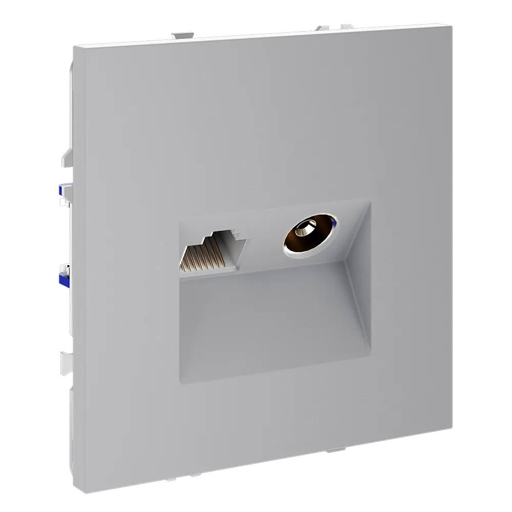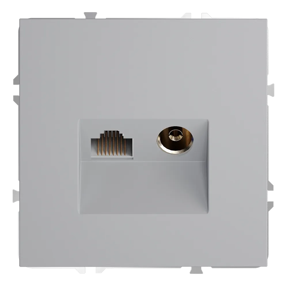 Серый — цвет тех, кто ценит суть без лишних слов. Розетка S70 TV+RJ45 VOLTUM в строгом сером исполнении — это идеальный баланс технологичности и сдержанной эстетики. Антенна и гигабитный интернет в одной минималистичной накладке, где стабильный сигнал прячется за фасадом безупречного вкуса.