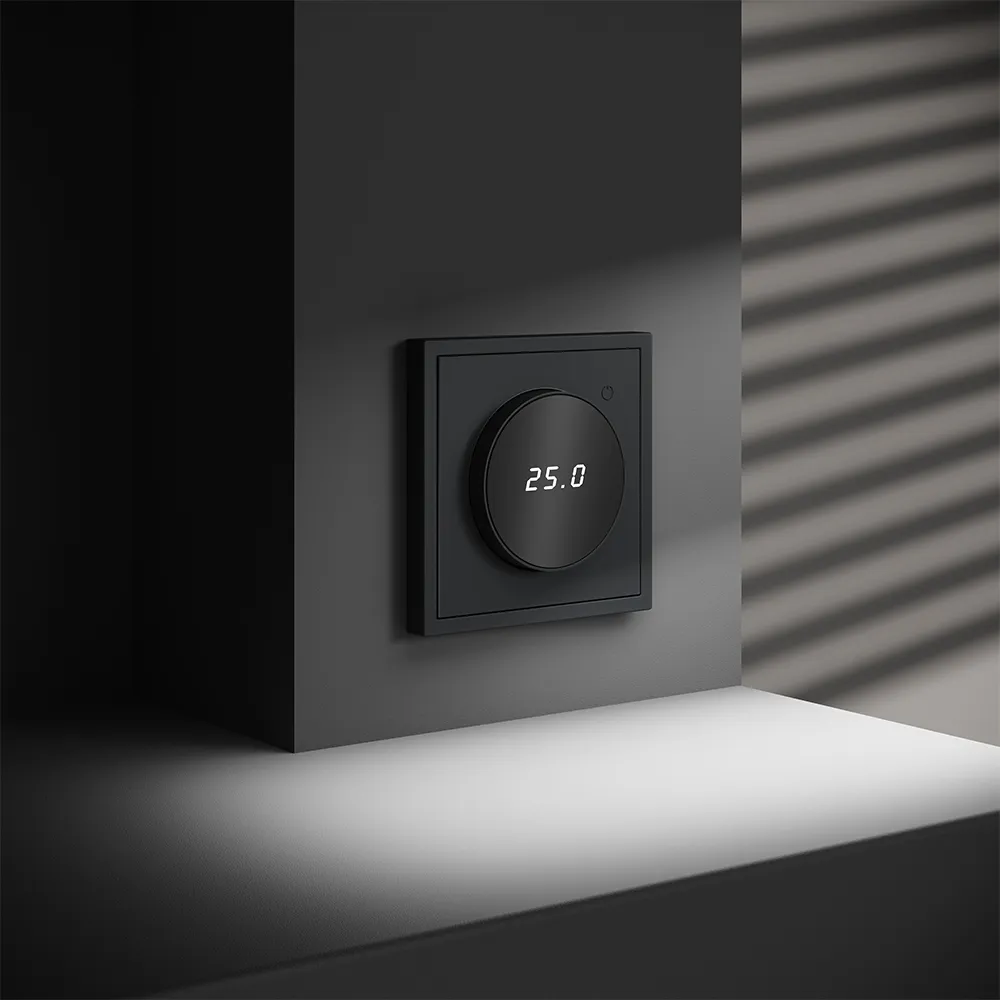 Терморегулятор полностью совместим с пластиковыми и стеклянными рамками серии S70, позволяя создать цельную, стильную композицию на стене вместе с розетками, выключателями и другими устройствами.