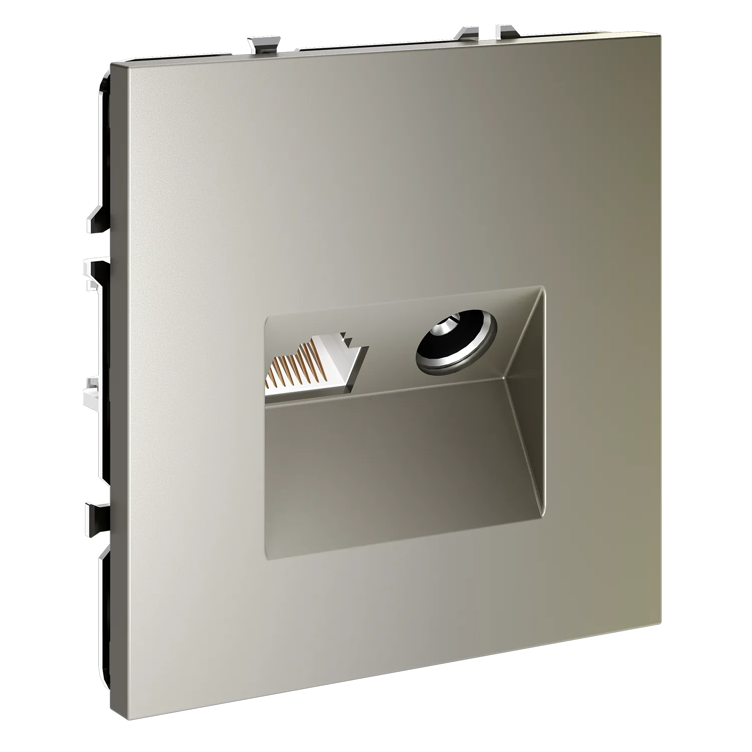 Забудьте о спутанных проводах за телевизором. Комбинированная розетка VOLTUM S70 TV+RJ45 объединяет антенну и гигабитный интернет в одной элегантной точке подключения. Чистый сигнал. Чистая стена. Полный комфорт.