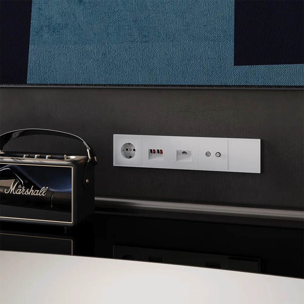 Благодаря встроенным разъёмам вы можете быстро и надёжно подключить до четырёх каналов акустики (например, фронтальные, тыловые колонки и сабвуфер), а при необходимости — так же легко отсоединить оборудование. Все акустические кабели скрыты внутри стены, что исключает путаницу и повышает безопасность.