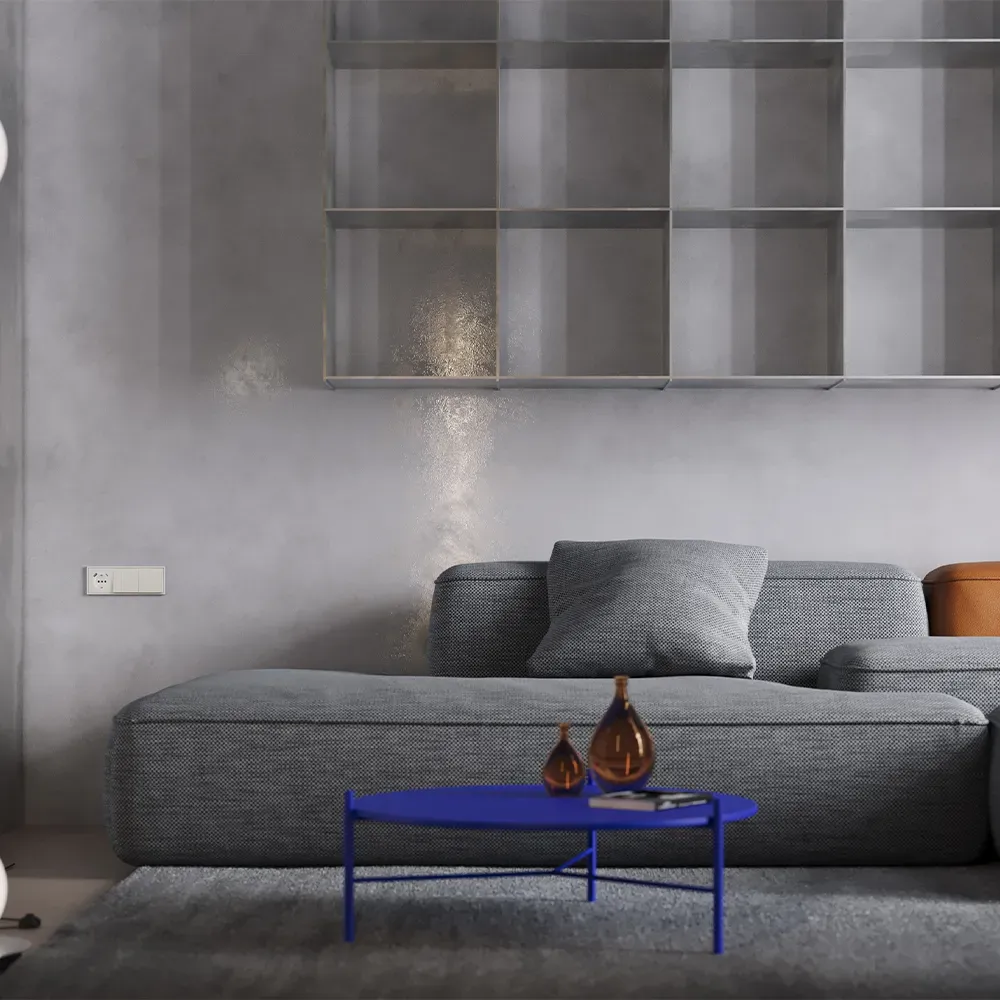 Перекрёстный переключатель полностью совместим с пластиковыми и стеклянными рамками той же серии и гармонично вписывается в любую композицию из розеток, выключателей и других устройств VOLTUM S70.